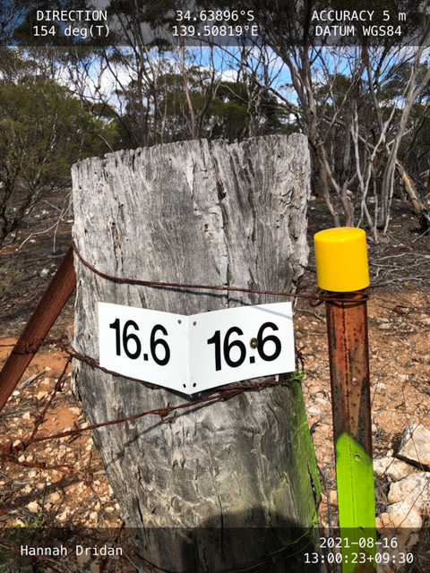 The purpose is to assist us or anyone when navigating to recognise a 16:6 fence line and route accordingly. This has not worked very well, as the so-called UV-stabilised star picket toppers seem to deteriorate in about 24 months, splitting apart and adding to the plastics in the environment. Like many aspects of the work we all do, we learn as we go!.