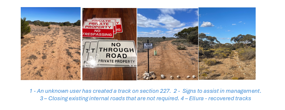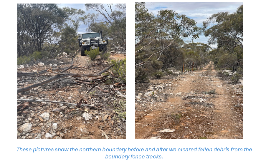 It is important to keep the designated tracks clear and easily accessed, as this encourages others who access their properties through ours to stay on the tracks and not create their own as they navigate around fallen timber, widening the track and causing damage to the surrounding vegetation and binding soil crust.