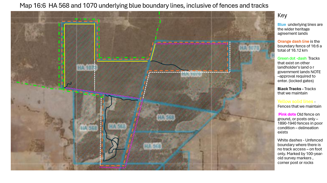 The image below illustrates the four sections of land that comprise the 16:6 Heritage agreement area, with the original blue section delineation. ( image from NatureMaps)